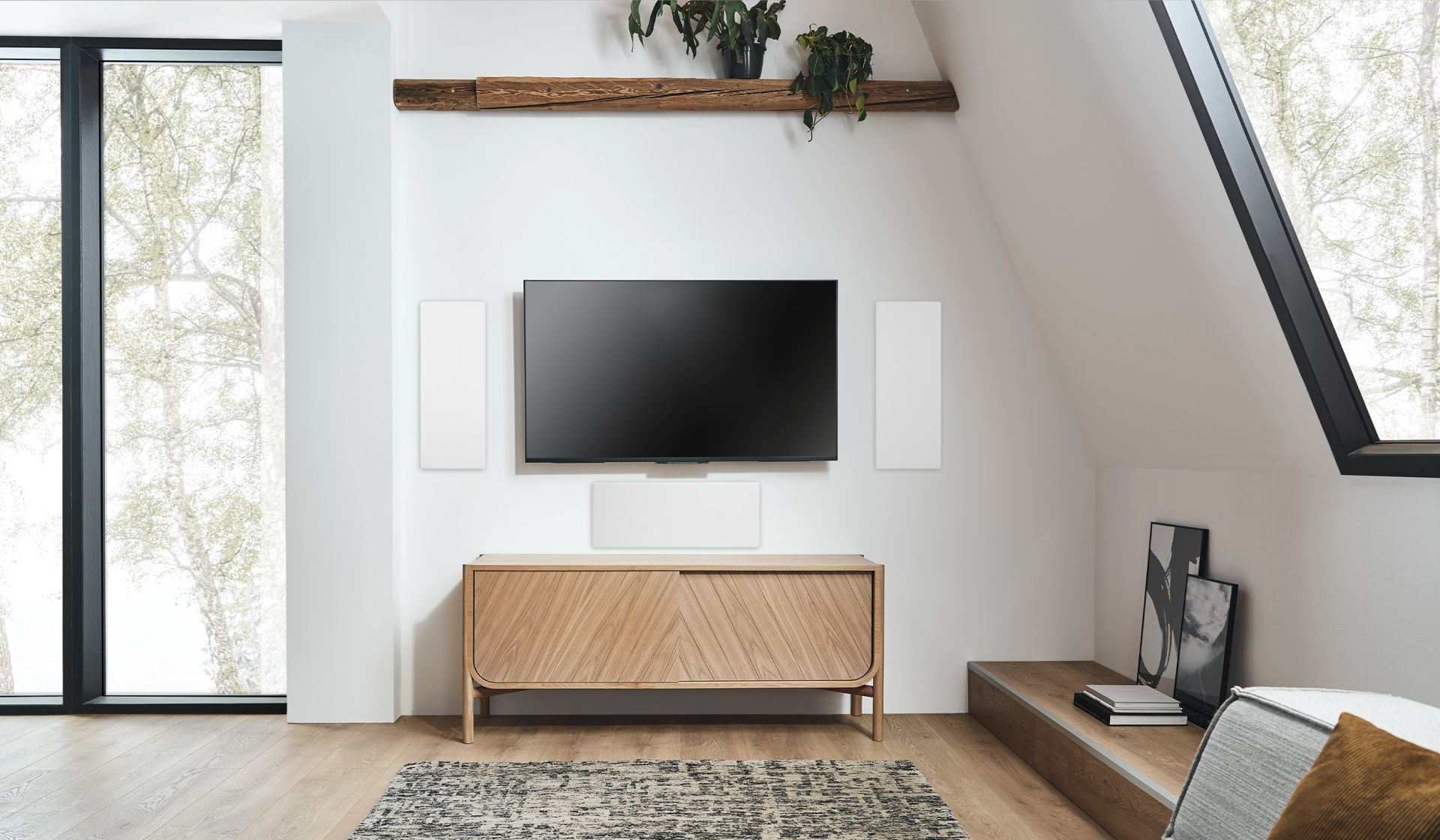 Atelier OnWall 5 to elegancki, kompaktowy głośnik charakteryzujący się kompaktowymi rozmiarami i wszechstronnością. Idealnie nadaje się do mniejszych pomieszczeń, jako rozszerzenie dźwięku przestrzennego w systemach kina domowego lub dyskretne rozwiązanie stereo w salonie lub biurze. Dzięki eleganckiemu wzornictwu dyskretnie wpasowuje się w każdą aranżację wnętrza – można go zamontować bezpośrednio na ścianie lub za pomocą opcjonalnego uchwytu VESA® dla optymalnego ustawienia.