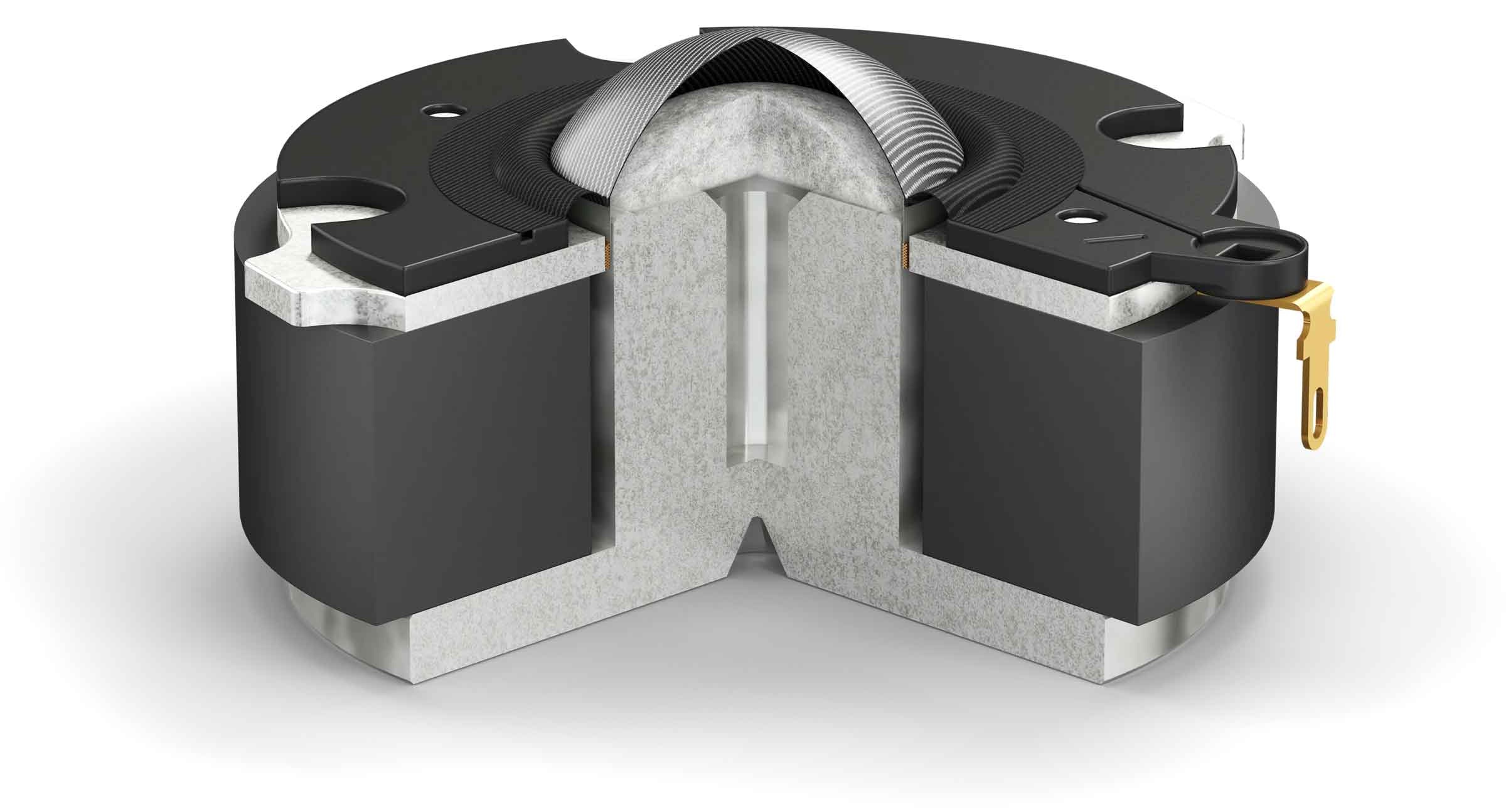 Seria SONIK wykorzystuje opatentowany materiał magnesowy SMC™, aby zmniejszyć zniekształcenia i poprawić liniowość dźwięku. Pierścień ferrytowy otacza hybrydowy rdzeń żelazo-SMC™, umieszczając materiał SMC™ bezpośrednio w strefie pracy cewki głośnika. To minimalizuje histerezę i prądy wirowe, dostarczając czystsze, bardziej szczegółowe i swobodne brzmienie średnich tonów.