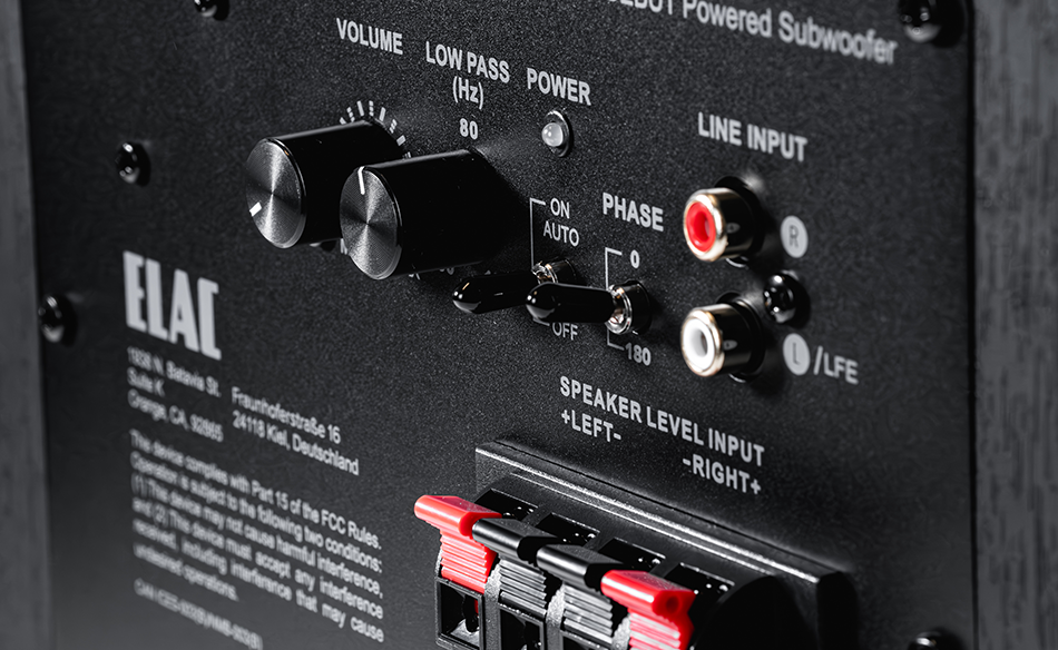 Regulowany zakres crossover 50-150 Hz wraz z kontrolą fazy i głośności umożliwia precyzyjne dopasowanie subwoofera do systemu. Te ustawienia pozwalają na optymalne zintegrowanie DS123 z różnorodnymi konfiguracjami głośników głównych.
