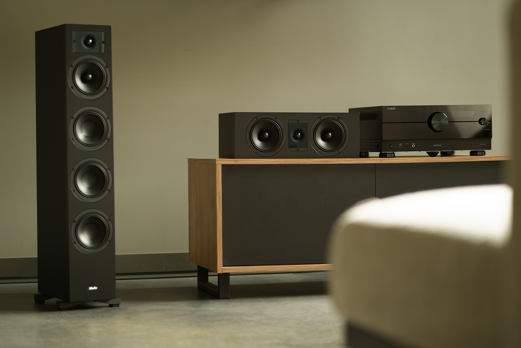 • Trzy 150-milimetrowe woofery o dużym wychyleniu z membranami Curv i aluminiowymi pierścieniami linearyzującymi indukcyjność
