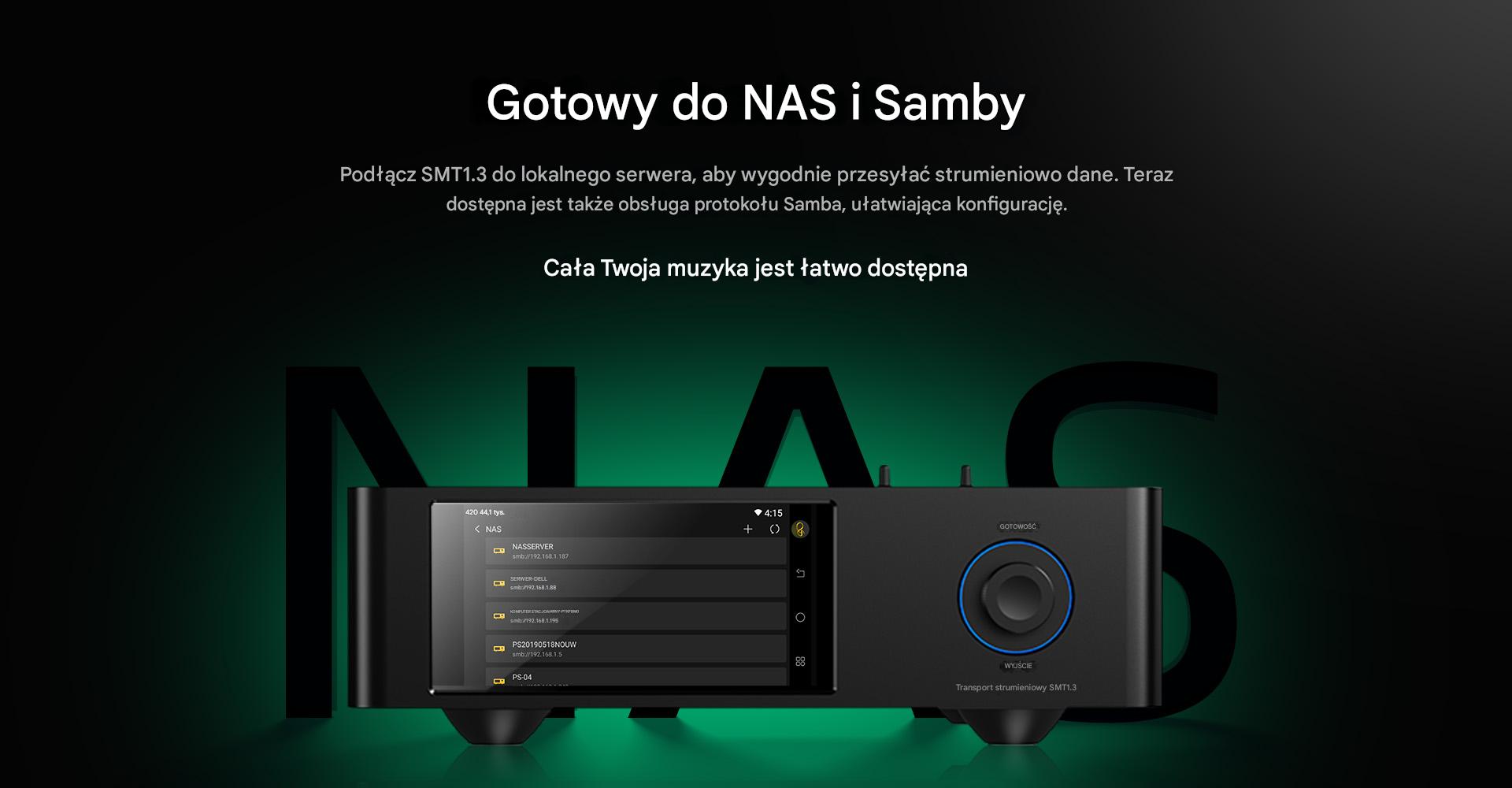 Streamer firmy Shanling można do tego podłączyć do serwerów i dysków sieciowych NAS, aby mieć łatwy dostęp do znajdujących się na nich plików. Wsparcie dla protokołu Samba przekłada się na łatwą konfigurację dostępu.
