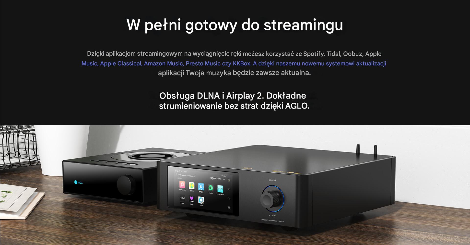 Model SMT1.3 ma wbudowane aplikacje do obsługi wszystkich popularnych usług streamingu muzyki, w tym Spotify, Tidal, Qobuz, Amazon Music, Apple Music, KKBox czy Presto Music. Nowy system aktualizacji gwarantuje, że użytkownicy zawsze będą korzystać z ich najnowszej wersji. SM1.3 wspiera do tego rozwiązania DLNA i Airplay 2, co ułatwia strumieniowanie z urządzeń obsługujących te standardy.