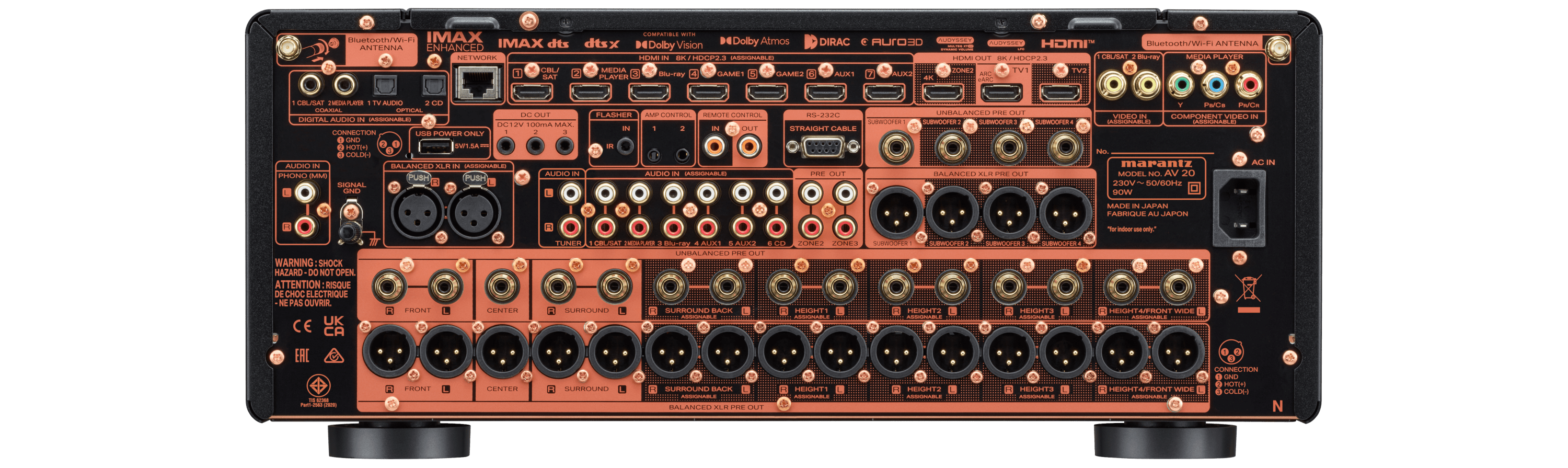 Stworzony dla koneserów dźwięku i obrazu AMP 20 został stworzony do ścisłej współpracy z przedwzmacniaczem Marantz AV 20, ale dzięki w pełni zbalansowanym wejściom XLR i klasycznym RCA bez trudu integruje się z dowolnym, wysokiej klasy procesorem kinowym.