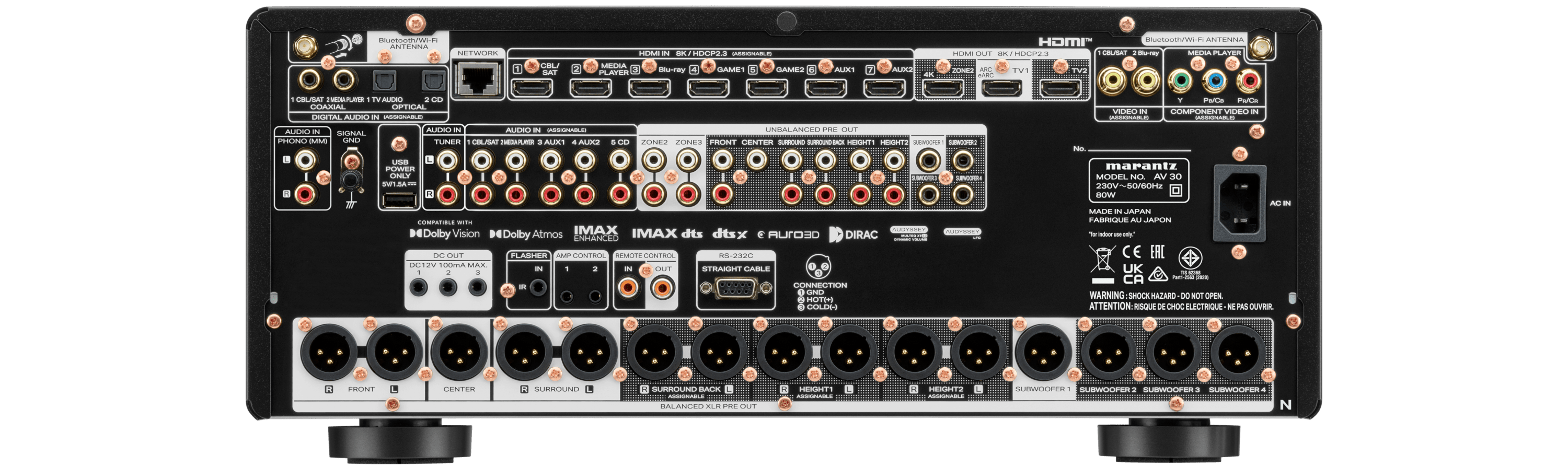 Dolby Atmos, DTS:X, AURO-3D i IMAX Enhanced – pełna immersja Procesor Marantz AV 30