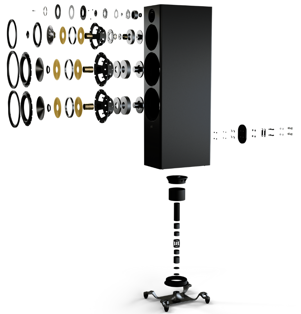 Flagowe, trójdrożne kolumny podłogowe zaprojektowane z myślą o połączeniu eleganckiego wzornictwa z brzmieniem, które wypełnia pomieszczenie detalem i energią.