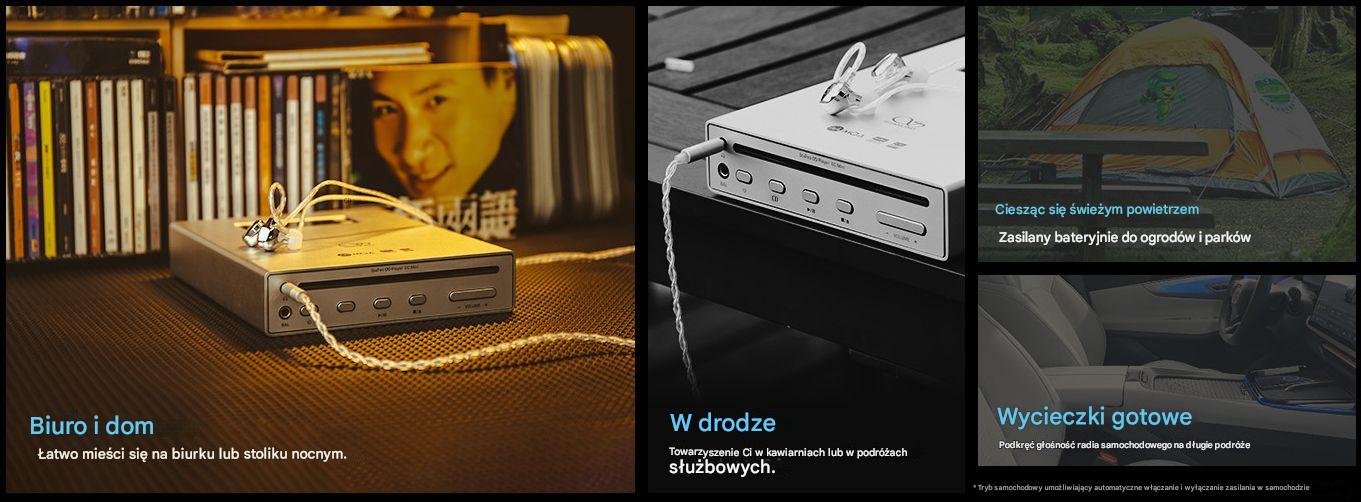 Nowy model firmy Shanling Audio ma dodatkowo wbudowaną baterię, dzięki czemu można go łatwo transportować. Można go bez problemu zabrać do kawiarni, na ławkę w parku czy do hotelu podczas podróży biznesowej. EC Mini można wykorzystać także w samochodzie do poprawienia jakości systemu audio - producent przygotował specjalny tryb samochodowy, który włącza/wyłącza odtwarzacz przy odpalaniu/gaszeniu silnika. Należy pamiętać jedynie, że odtwarzanie płyt CD powinno odbywać się, gdy urządzenie spoczywa stabilnie na podłożu w trybie horyzontalnym.