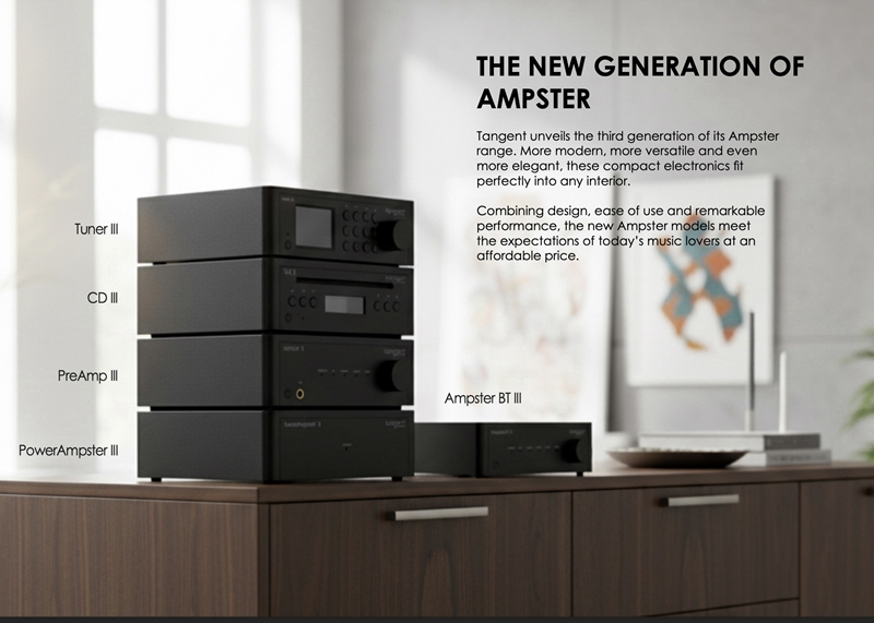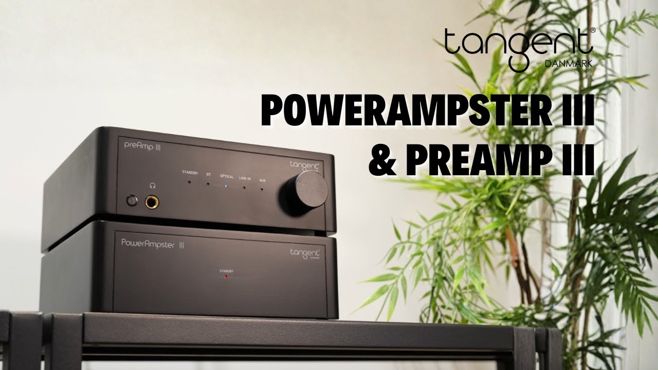 Tangent PowerAmpster III to kompaktowy wzmacniacz mocy o boku 200 mm. Trzecia generacja dostarcza do 2 × 100 W przy 4 Ω i posiada wejście trigger 12 V, ułatwiające integrację z systemem automatyki domowej. Nawiązuje do minimalistycznego wzornictwa marki obecnego od 1996 roku.