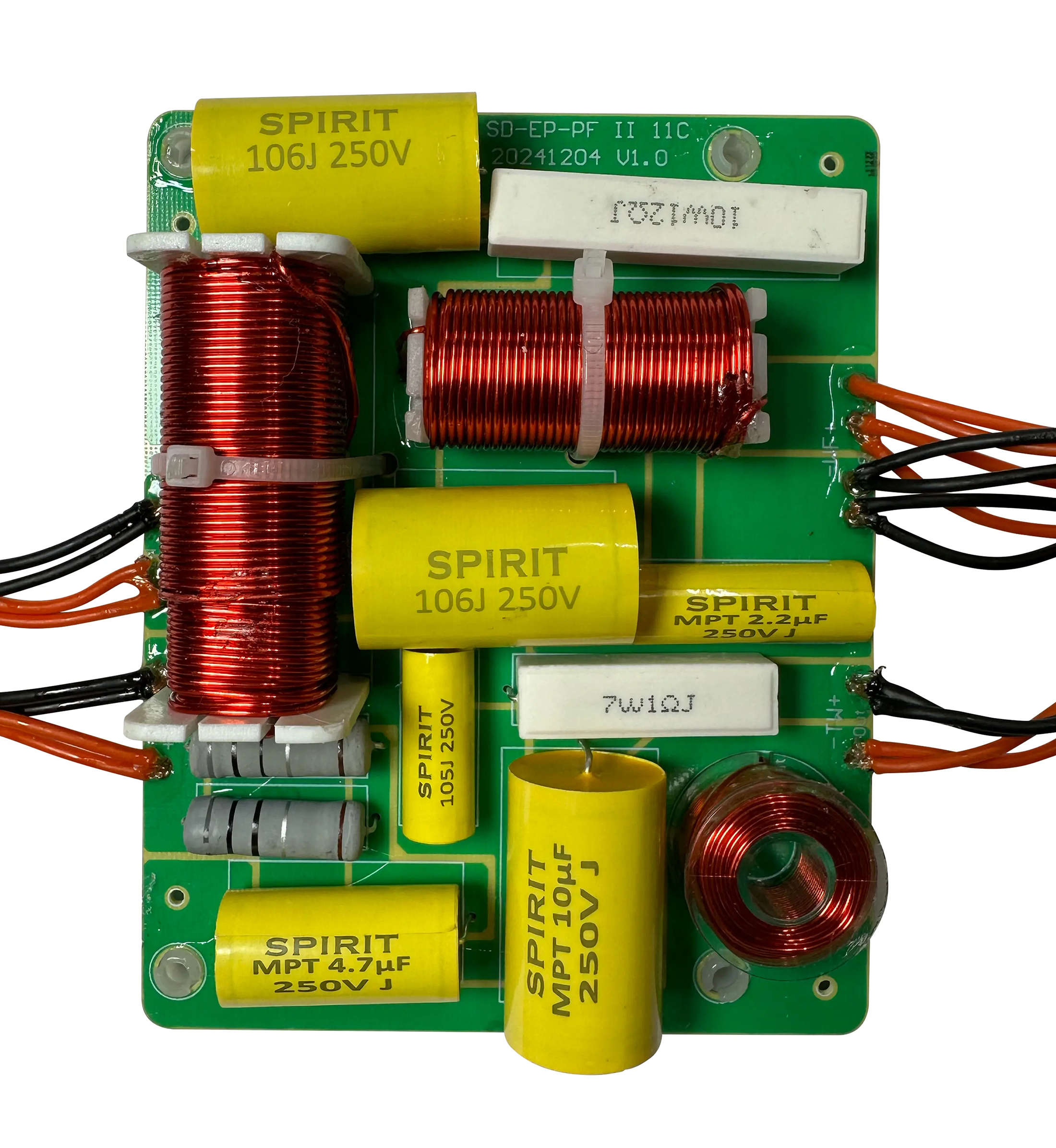 Elipson gruntownie przeprojektował zwrotnicę pasywną tej drugiej generacji, wykorzystując komponenty audiofilskie zarezerwowane dotąd dla wyższych serii. Nowe kondensatory polipropylenowe poprawiają przejrzystość wysokich tonów, a rezystory warstwowe zapewniają większą precyzję w separacji pasm. Cewki o niskiej rezystywności minimalizują straty i zniekształcenia, co szczególnie korzystnie wpływa na kontrolę basu.