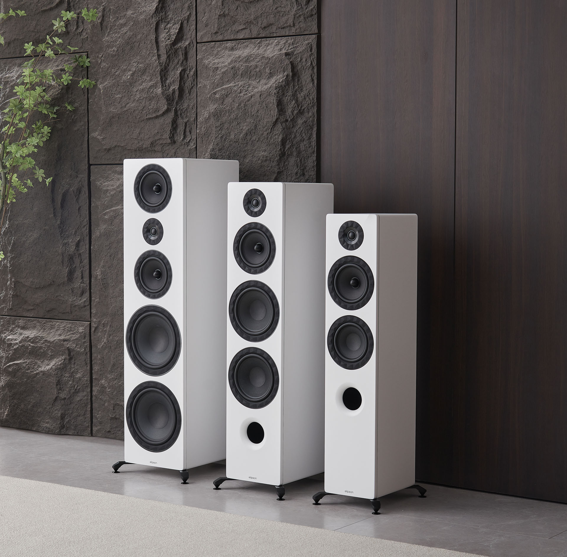 Modele podłogowe wyposażono także w nowe, unowocześnione nóżki odsprzęgające. Te podstawy zapewniają wizualnie lżejszą, a jednocześnie mechanicznie wzmocnioną konstrukcję, gwarantując lepszą izolację obudowy od podłoża. To rozwiązanie ogranicza przenoszenie niepożądanych wibracji i poprawia odtwarzanie niskich częstotliwości, co jest szczególnie doceniane w wymagających warunkach odsłuchowych.