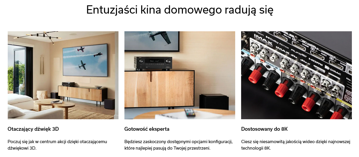 Interakcja między systemem nagłośnienia a fizycznym układem pomieszczenia ma ogromny wpływ na jakość dźwięku. Dirac Live® Room Correction (dostępny wkrótce w 2023 roku) wykorzystuje najnowocześniejsze, opatentowane algorytmy do analizy i cyfrowej redukcji wpływu pomieszczenia i poprawy wydajności głośników. Wybrane komponenty AV firmy Denon oferują funkcję aktualizacji Dirac Live. Możesz kupić klucz licencyjny Dirac Live, aby odblokować funkcjonalność. Odwiedź dirac.com/denon/, aby uzyskać więcej informacji. Funkcjonalność będzie dostępna przez przyszłą aktualizację oprogramowania systemowego. Bądźcie czujni!