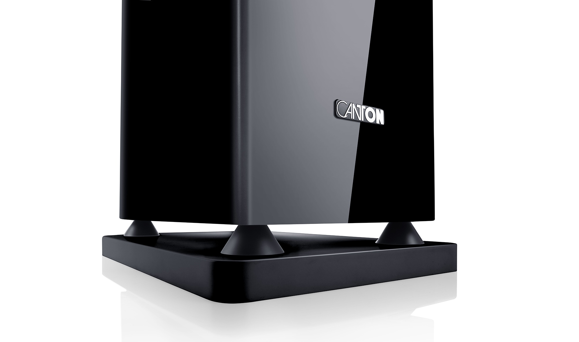 Kolejnymi atrakcyjnymi elementami są wysokiej jakości aluminiowe pierścienie obudowy głośnika, wykonane w technologii Seamless Diamond Cut, oraz zaokrąglone w rogach panele z tkaniny, które przylegają magnetycznie do przegród. Na koniec, pięknie ukształtowana drewniana podstawa z czterema metalowymi nóżkami stanowi solidną podstawę dla smukłych głośników podłogowych. Ukryty przed wzrokiem słuchacza duży port bas-refleks w podstawie obudowy rozszerza pasmo przenoszenia w dół. Układ portu bas-refleks typu downfire równomiernie stymuluje akustycznie pomieszczenie – pożądanym rezultatem jest precyzyjny, głęboki bas bez tendencji do dudnienia.