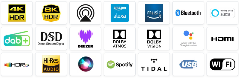 Dzięki obsłudze formatów audio wysokiej rozdzielczości, takich jak ALAC, FLAC i WAV do 192 kHz/24 bity, a także plików DSD 2,8/5,6 MHz, możesz cieszyć się wyjątkową jakością dźwięku, korzystając z Wi-Fi, Bluetooth lub Apple AirPlay 2, a nawet przez port USB w AVR.