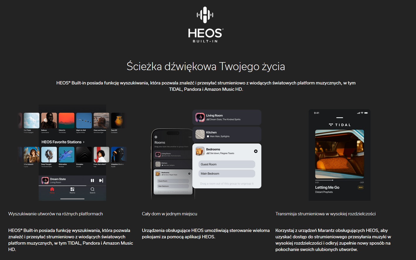W codziennym użytkowaniu duże znaczenie ma też streaming. Integracja z HEOS oraz status Roon Ready ułatwiają sterowanie biblioteką i serwisami w ramach jednego ekosystemu, bez konieczności „żonglowania” aplikacjami.
