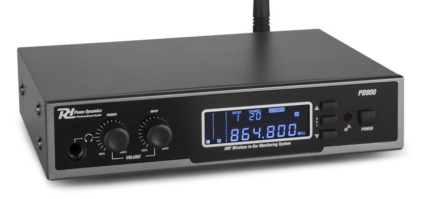 PD800 to wart swojej ceny, świetnie brzmiący system In Ear Monitoring (IEM), zaprojektowany do występów na scenie i transmisji. Korzystając z aktualnych częstotliwości bezprzewodowych UHF, muzycy mogą swobodnie poruszać się po scenie, słysząc siebie wyraźnie i nie powodując uszkodzeń słuchu. Zestaw wyposażony jest w czytelny, podświetlany wyświetlacz LCD zarówno na odbiorniku, jak i nadajniku oraz jest dostarczany z izolowaną słuchawką. Możliwe jest również użycie własnych, specjalnie zaprojektowanych słuchawek.