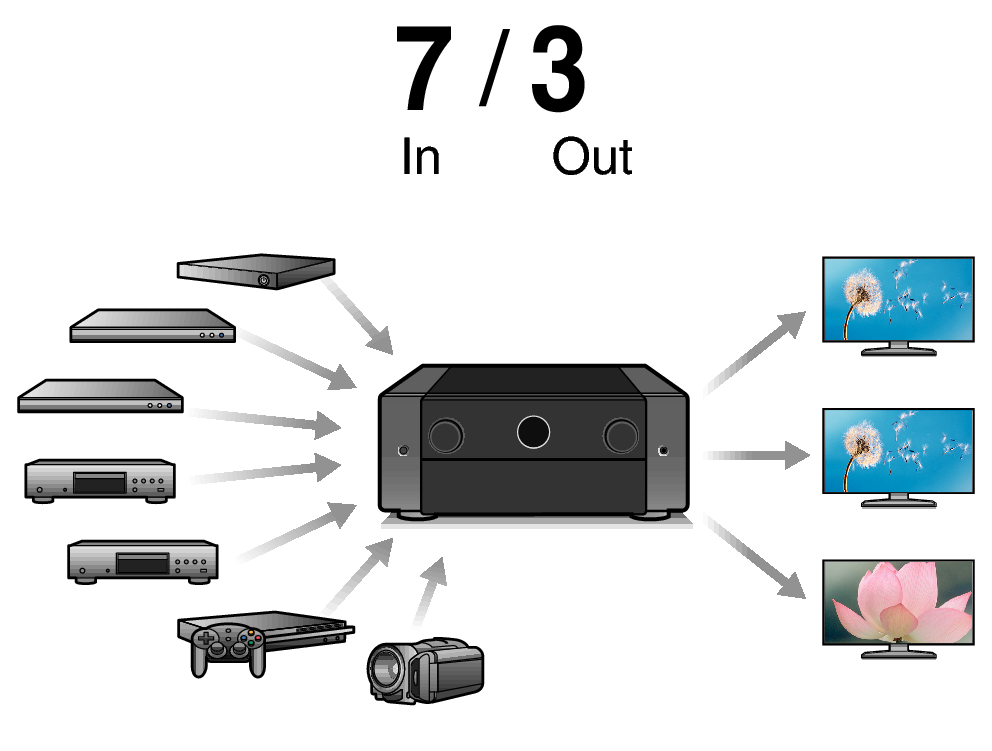 • HDMI wejścia: 7 x HDMI 2.1 (wszystkie 8K/60 Hz / 4K/120 Hz)