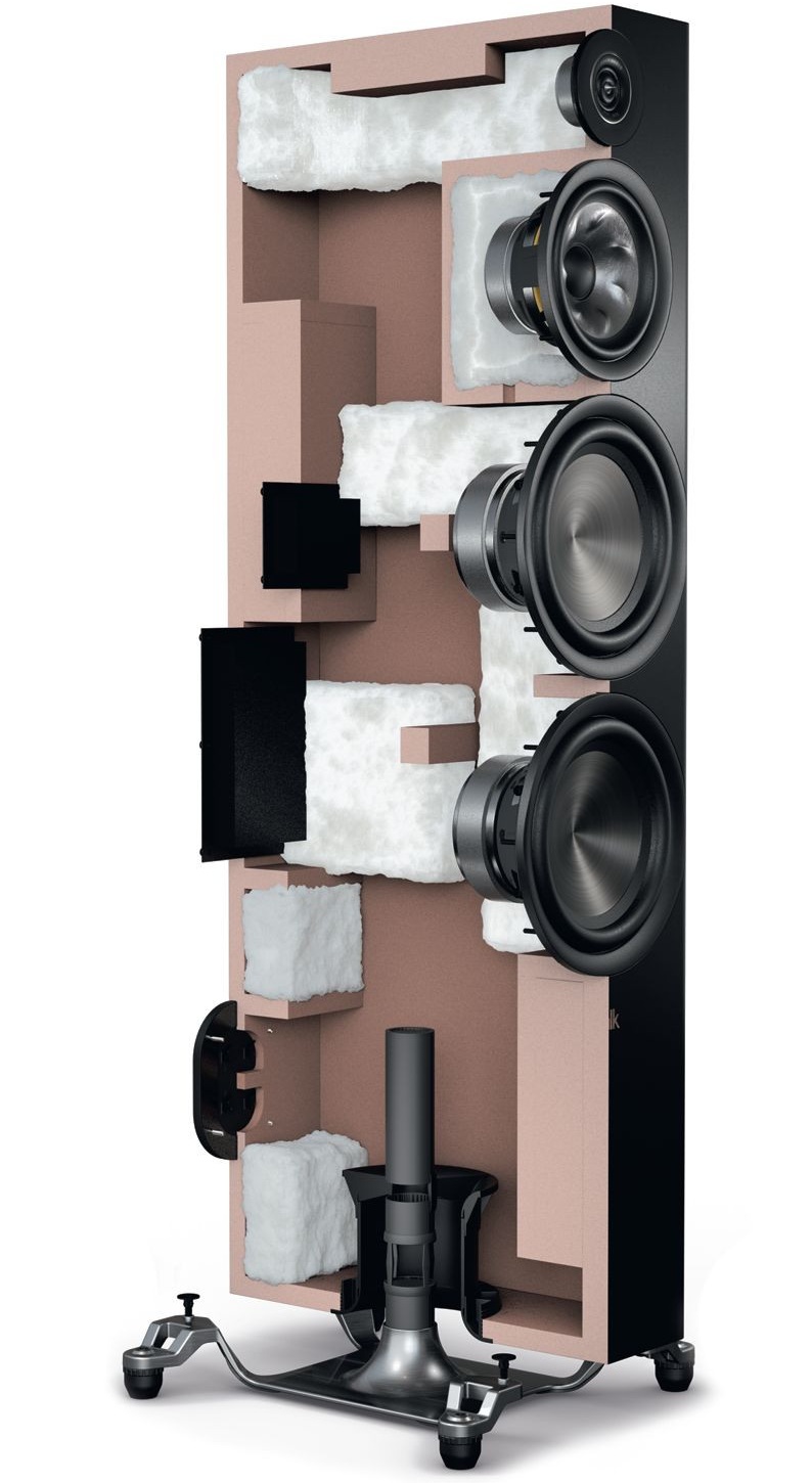 Oprócz konstrukcji wygładzającej przepływ powietrza opuszczającego obudowę, zastosowano X-Port – specjalnie dostrojone absorbery o zamkniętej konstrukcji, które pomagają eliminować niepożądane rezonanse portu i obudowy.