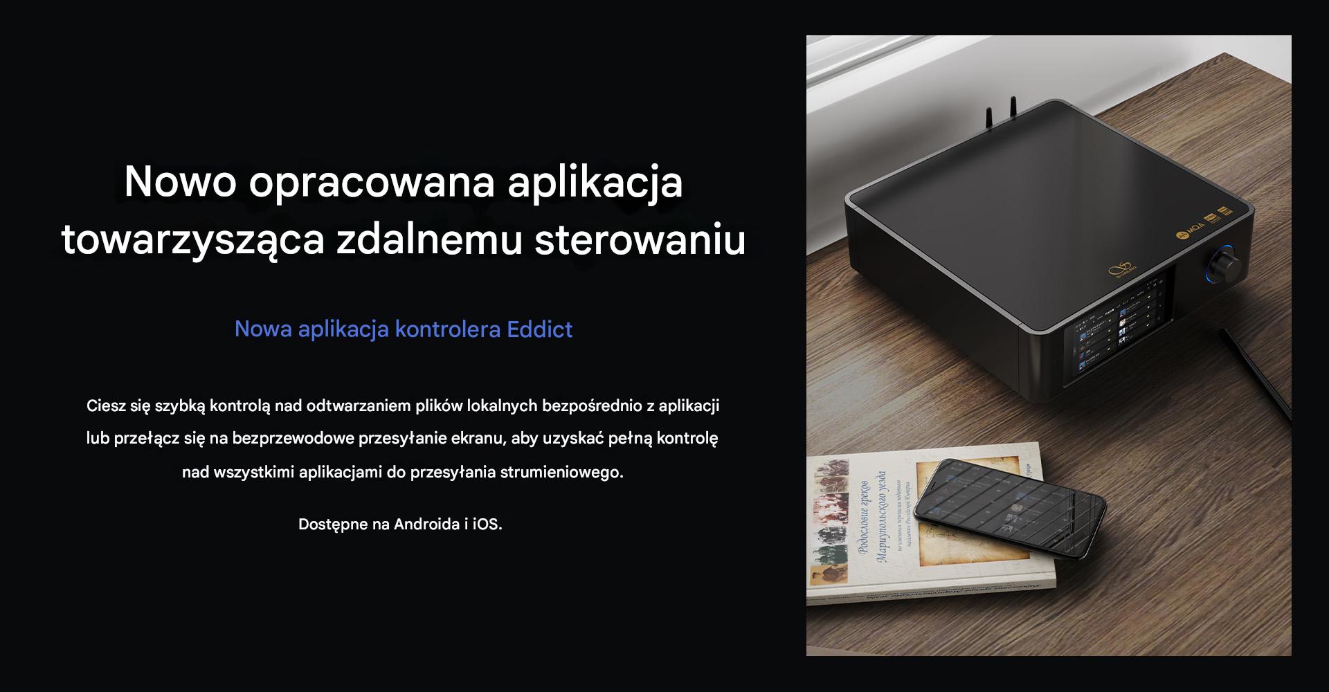 Shanling dla SMT1.3 stworzył nową aplikację towarzyszącą Eddict Controller, która dostępna jest na urządzenia mobilne z systemami Android i iOS (w przyszłości pojawi się także w wersji dla tabletów z iPadOS). Działa ona szybko i stabilnie oraz umożliwia pełną, zdalną kontrolę streamer.