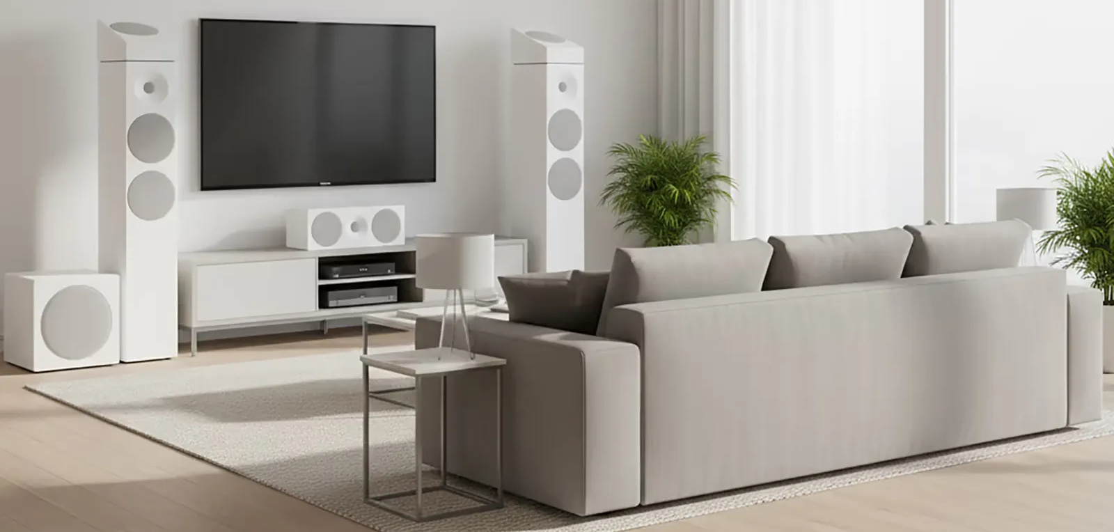 Najlepsze efekty uzyskuje się przy ustawieniu modułów na kolumnach frontowych (5.1.2) lub dodatkowo tylnych (7.1.4). Kluczowe znaczenie ma sufit — twarda, gładka powierzchnia zapewnia optymalne odbicie dźwięku. Automatyczna kalibracja (Audyssey, Dirac, YPAO) pomaga dopasować system do pomieszczenia.