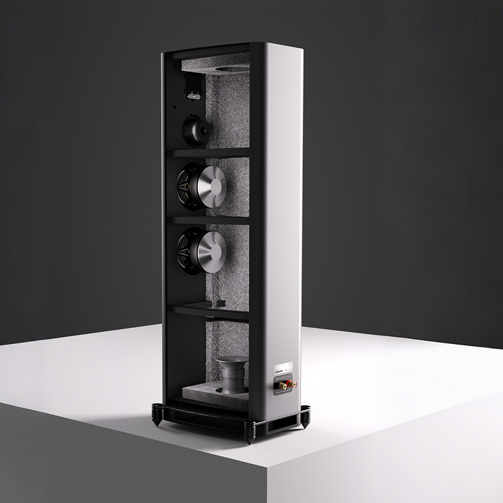 Zastosowanie hybrydowego cokołu, łączącego metalowe i drewniane elementy obudowy, poprawia integralność strukturalną i redukuje niepożądane wibracje. Ta innowacyjna podstawa gwarantuje, że dźwięk pozostaje czysty i pozbawiony podbarwień, wolny od zewnętrznych artefaktów rezonansowych.